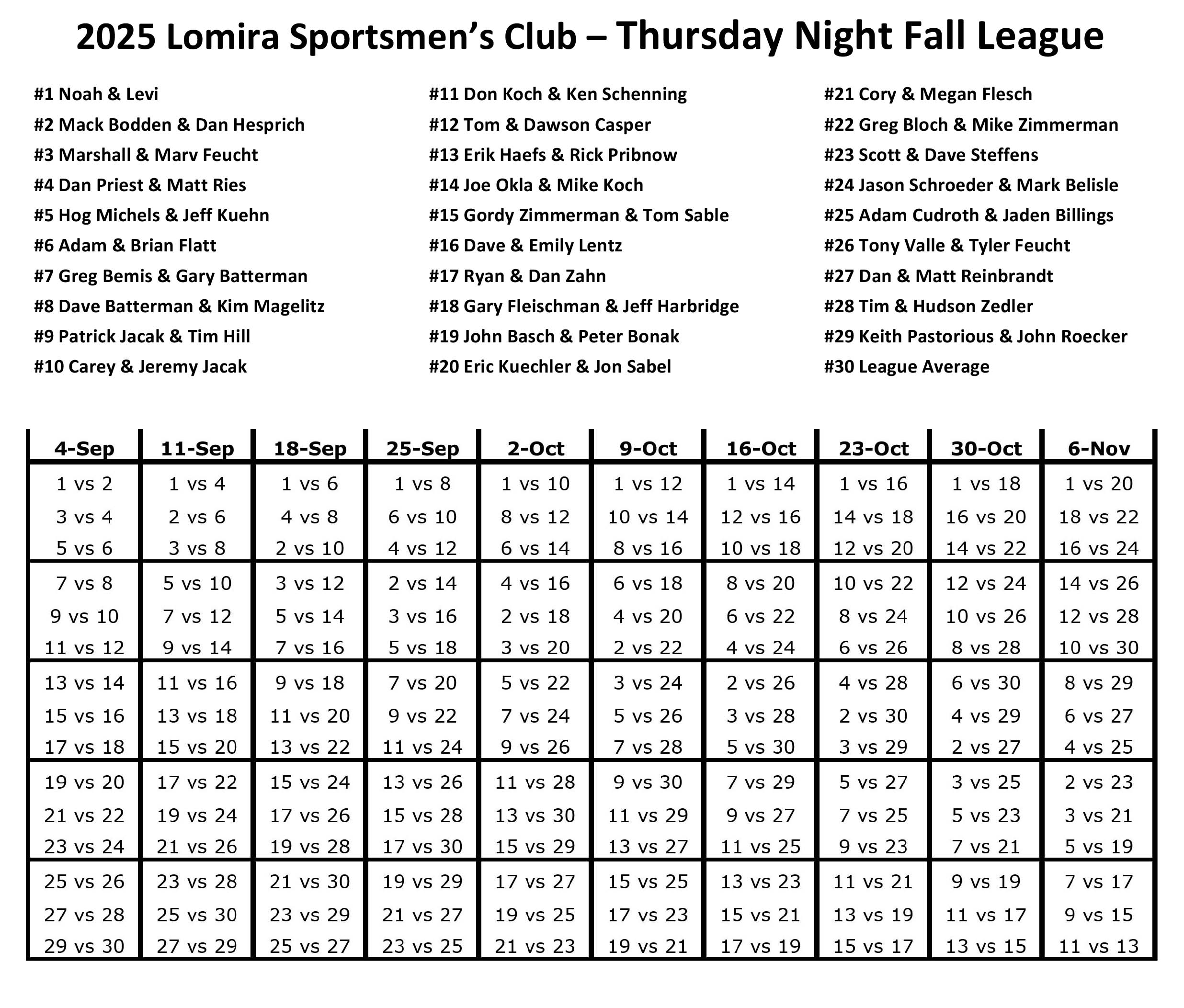 2025 Fall Team Schedule